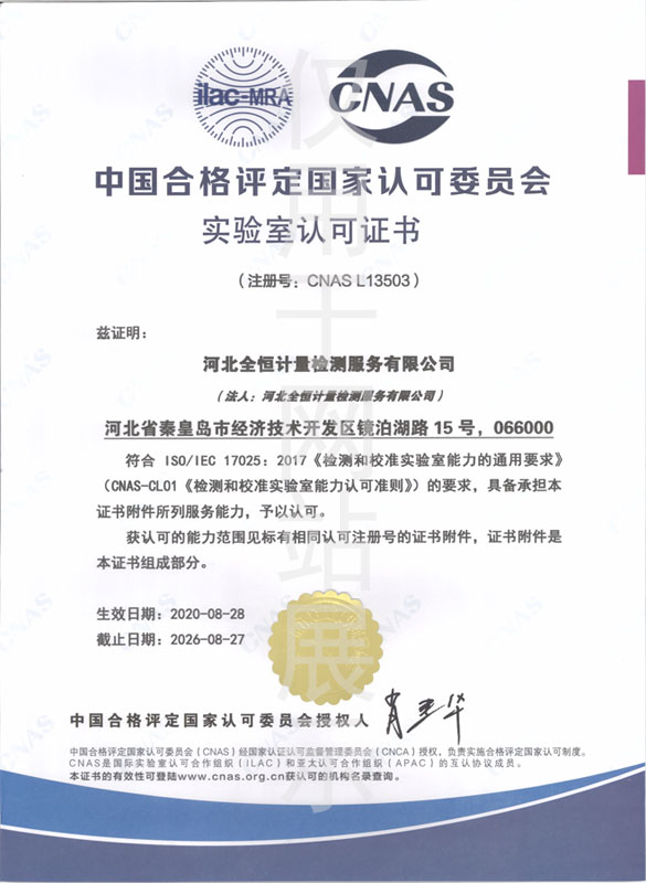 中國合格評定國家認(rèn)可委員會實(shí)驗(yàn)室認(rèn)可證書